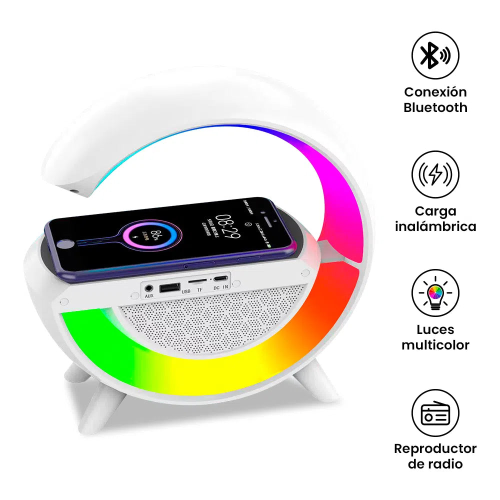 “Compré 2, uno para mí y otro como regalo. A todos les fascinó. Música, luz suave y carga en uno solo. ¡De verdad es como tener un asistente personal en casa!” — Valentina A. – Cartagena