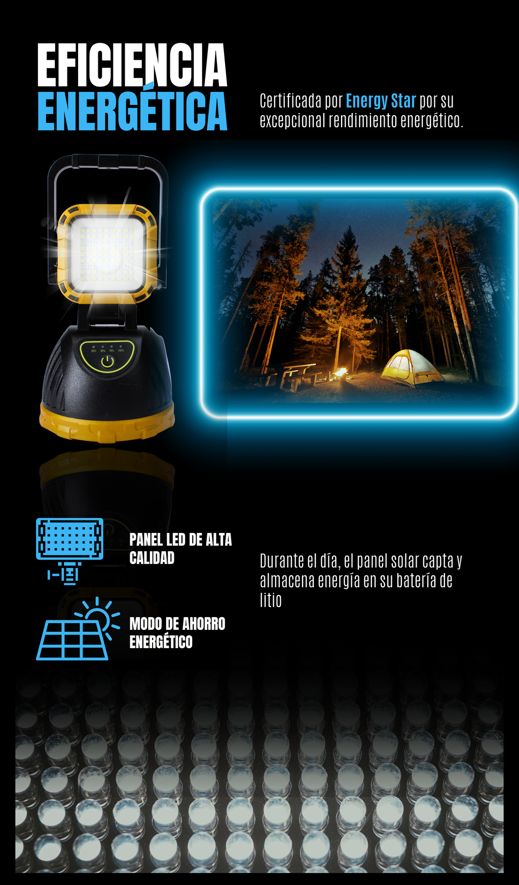 💡 Alta eficiencia lumínica: Tecnología LED avanzada que proporciona iluminación brillante con bajo consumo de energía.