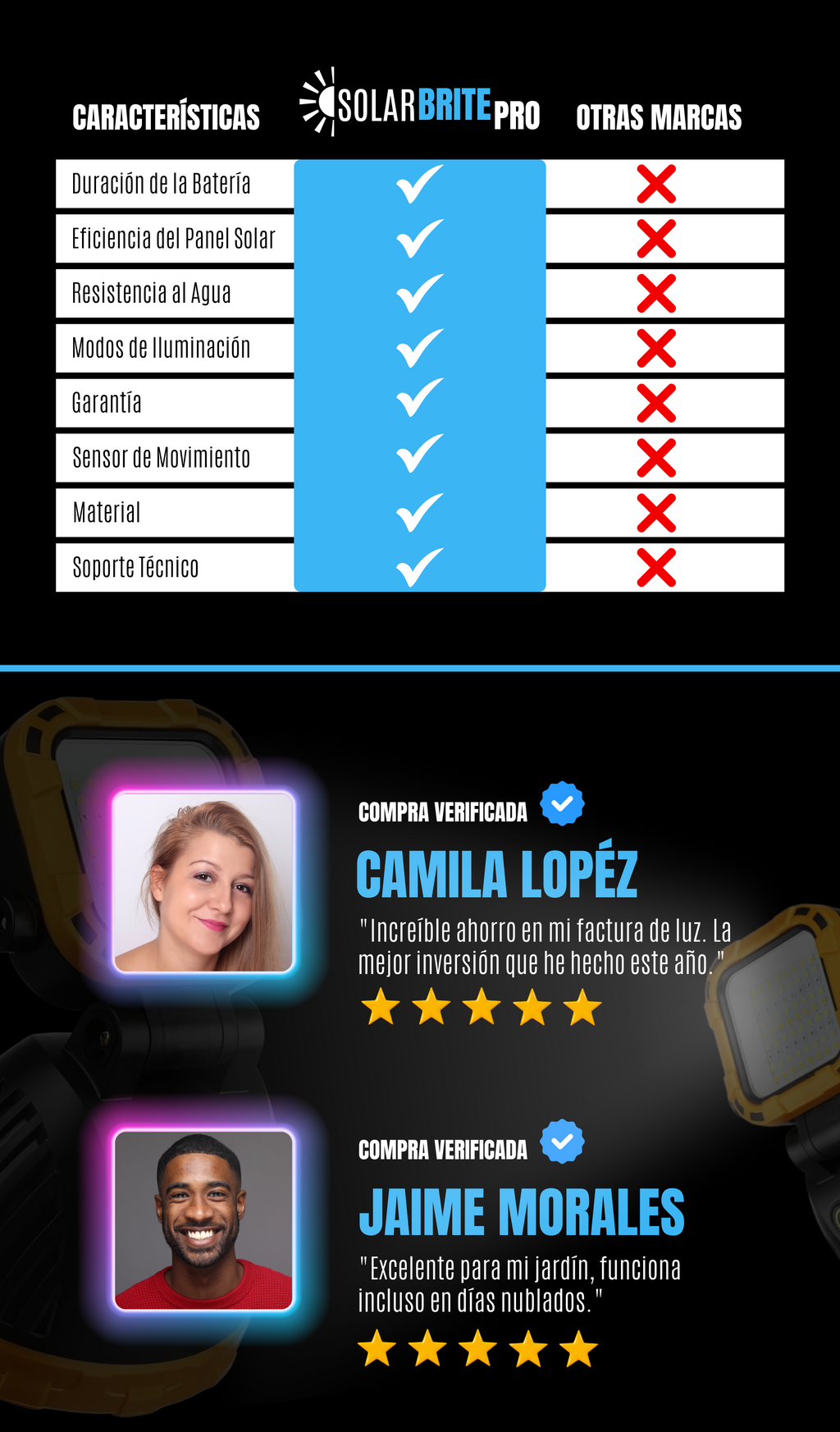 ☀️ Energía renovable: Panel solar de alta capacidad que permite carga rápida y eficiente durante el día.